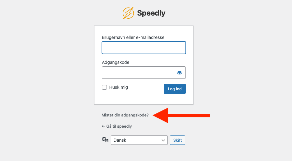 - Indtast din email eller dit brugernavn til hjemmesiden