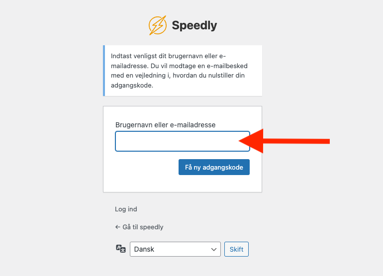 - Indtast din email eller dit brugernavn til hjemmesiden